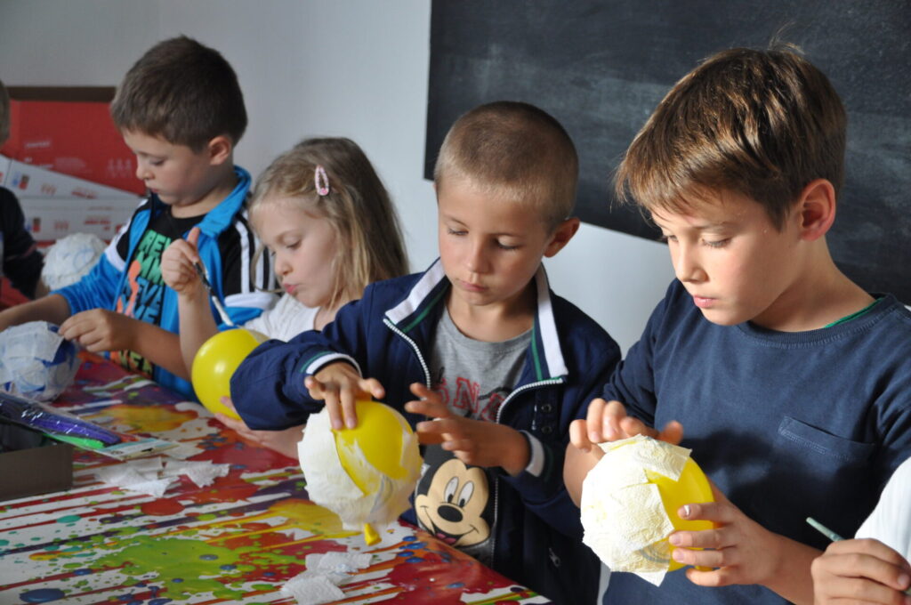 Z učenci osnovne šole redno potekajo ustvarjalne delavnice, na katerih spoznavajo različne materiale in tehnike. V domu organiziramo za to dejavnost specifične delavnice, v kateri otroci sproščeno rišejo, režejo, lepijo in nasploh ustvarjajo. Dejavnost je dragocena tudi za razvoj fine motorike, ki je še posebno pomembna pri mlajših učencih. Posebej ustvarjalni smo pri izdelavi scenografije, ki jo za naše muzikale sami pripravimo vsako leto.